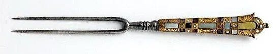 Utensils have always been contentious. When the Greek niece of Byzantine Emperor Basil II, Maria Argyropoulina, was married in 1004 to Giovanni Orseolo, son of the Doge of Venice, its head of state, she horrified the Venetian oligarchy by using a golden two-pronged fork she had brought in her dowry to spear the morsels her eunuchs chopped her food into. While an early version of the fork must have been known, having long been used in cooking and ceremonies by the Ancient Egyptians, a prominent Venetian cleric apparently proclaimed, “God in his wisdom has provided man with natural forks - his fingers. Therefore it is an insult to Him to substitute artificial metal forks for them when eating.” When she - and her husband and their son - died two years later of the plague, it was considered God’s vengeance.