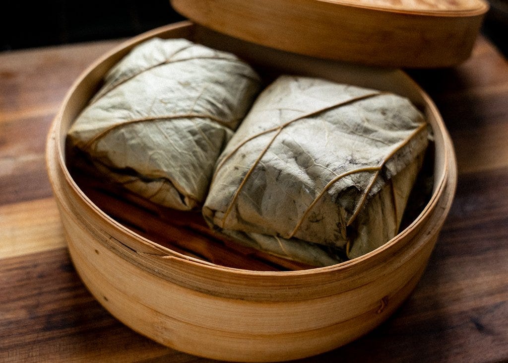Once china and porcelain became more widely affordable from the 17th century on, trenchers were abandoned in favour of crockery - and eventually to present-day restaurant trends which have led to things to eat off like shovels that are patently absurd. But travel across South and South East Asia, Polynesia, Melanesia and Latin America and your food is very likely to be served on or in a leaf. Corn-based tamales, originally created by the ancient Mayans and Aztecs of Mesoamerica, are enfolded in banana leaves, as are the pasteles of the Caribbean and Puerto Rico. Originating in Canton, stuffed sticky rice lo mai gai, one of my (manifold) courses in My Last Meal On Earth, are wrapped in lotus leaves.