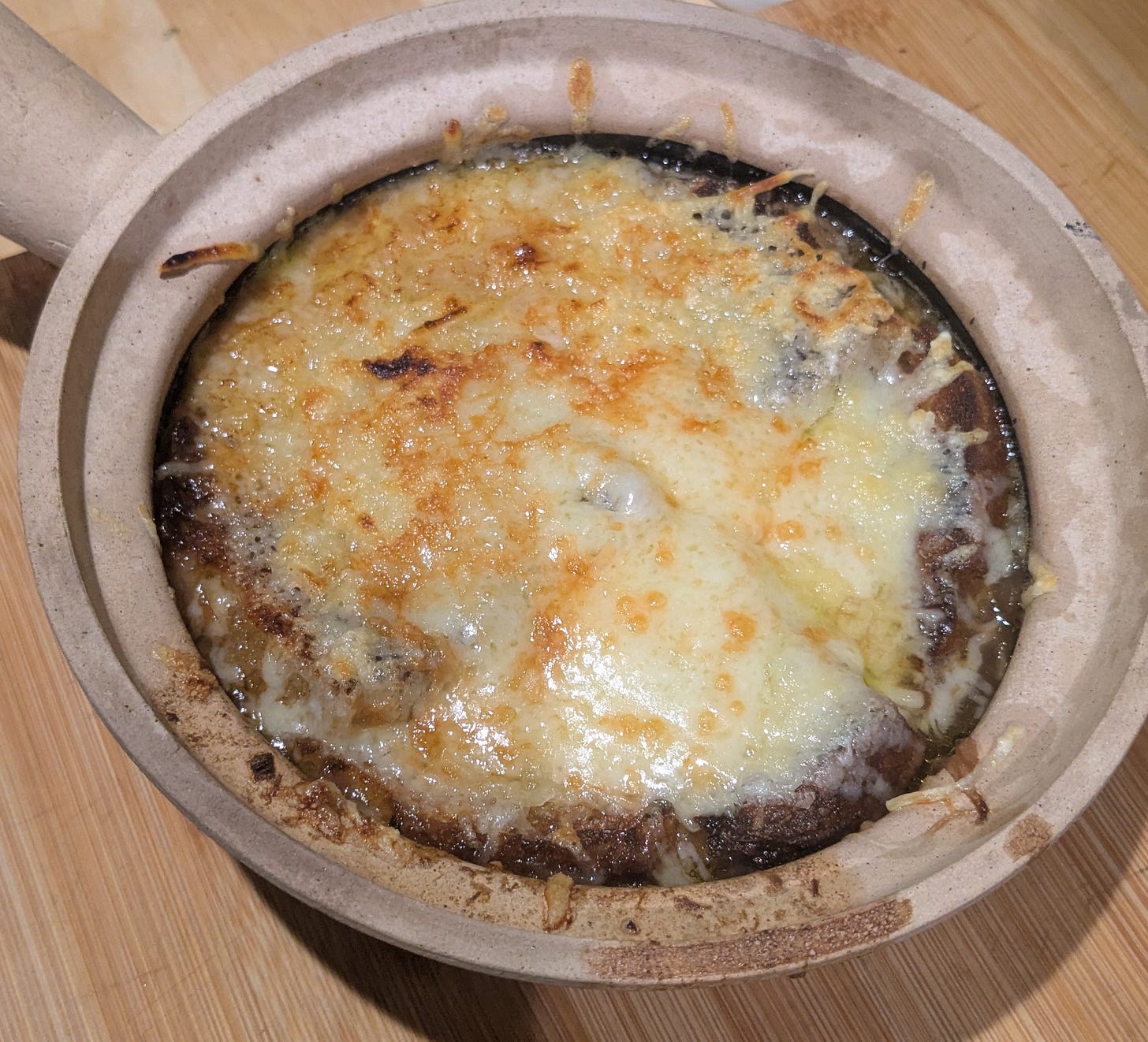 This is the French Onion Soup I slurped this week in Paris in a snowstorm. Being English, I’ve been trained that boasting is the despicable behaviour of the vain. But my own French Onion Soup is a good deal more sumptuous. You be the judge.