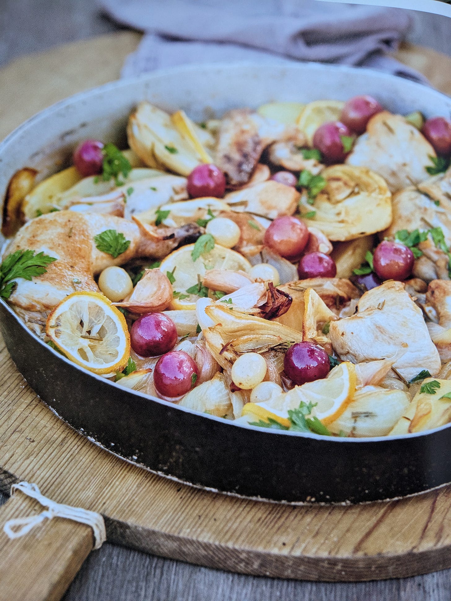 A recipe for Wine-braised chicken with roasted grapes